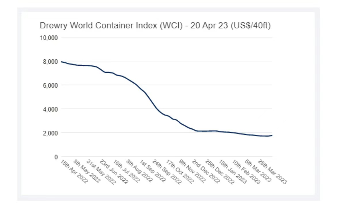 Drewry's World Container Index registered its best-ever weekly movement since July 2021, a span of about 21 months, having had 15 consecutive weekly declines and registering the second-ever weekly uptick since March 2022.