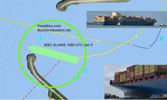 On January 9, MSC Elaine, a container ship owned by MSC with a capacity of 8,562TEU, was leaving the Italian port of Gioia Tauro when the ship lost control, hit the port's breakwater and ran aground. The ship ran aground at the entrance to the port of Gioia Tauro, causing traffic to and from the port to be blocked. Gioia Tauro Port is the largest container port in Italy, the sixth largest port in the Mediterranean, and a major transshipment hub in the region.